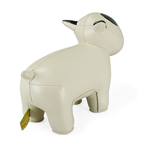 Zuny Black Eye Patch Dog (Doly II) Faux Leather Animal Bookend - Wheat (Off White)