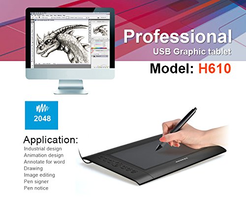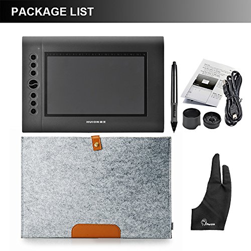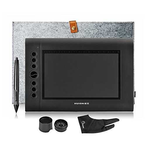 HUION H610 Graphics Drawing Tablet + Anti-fouling Golve + 15 Inch Wool Felt Liner Bag