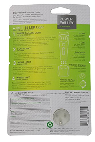 - BE PREPARED IN AN EMERGENCY - lights up automatically when the power fails, helping you to find your flashlight quickly; ideal during blizzards, floods, hurricanes, ice storms, thunderstorms, tornadoes and black outs