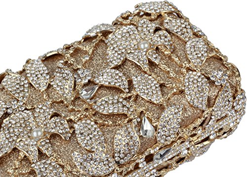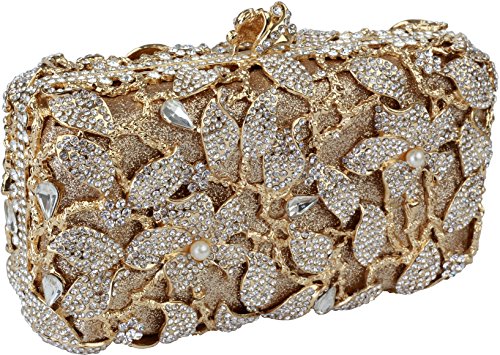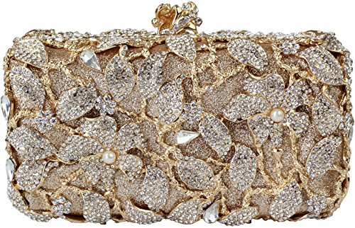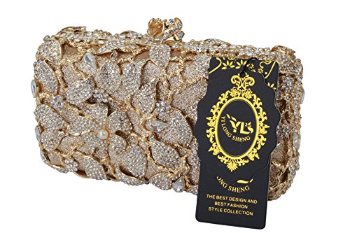 -. Title : Yilongsheng 2016 New Womens Pearl Flower Designer Clutch Bags with Shiny Crystal Rhinestones (Golden)