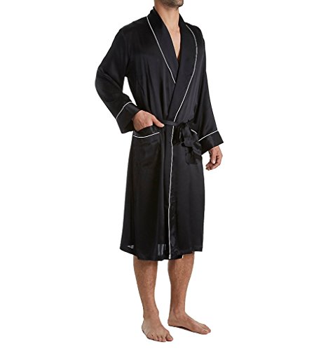 Studio : Geoffrey Beene Men's Sleepwear Publisher : Geoffrey Beene Men's Sleepwear Binding : Apparel Product Description Luxurious Geoffrey Beene 100% pure silk charmeuse shawl collar robe features contrast piping, two front pockets, separate belt that is stitched down at the back, double belt loops, back patch and locker loop. Give the gift of comfortable luxury. 0