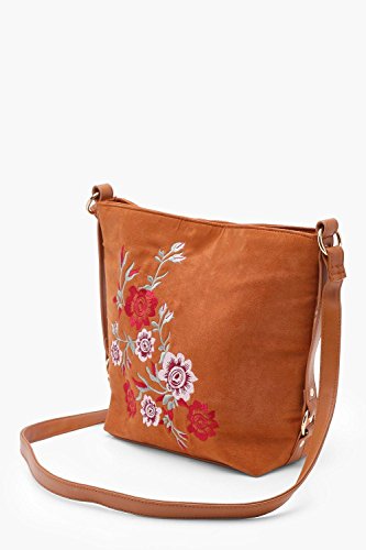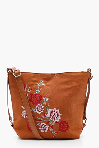 (Boohoo)/Accessories/Handbags/DIRECT FROM USA/Boohoo Womens Lucy Embroidered Bucket Cross Body in Tan size One Size