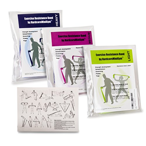 RESISTANCE BANDS by HardcoreMiniGym - truly excellent exercise resistance bands - Resistance bands can be used all the time - perhaps just 5mins here and there in the office/TV/cooking/on holiday. Their versatility, portability and robustness means that, in my experience, this is the one piece of exercise equipment that you are likely to use over and over.