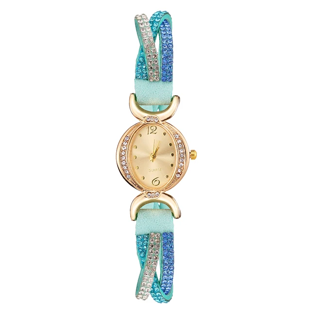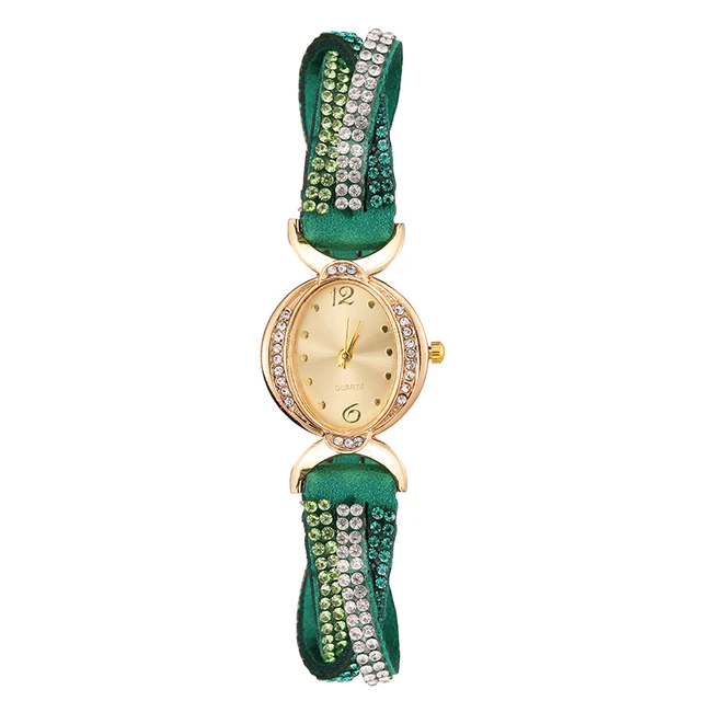 | [해외] 클래식 패션 럭셔리 브랜드 크리스탈 팔찌 시계 시계 여성 우아한 넉넉한 드레스 석영 손목 시계 선물 |
