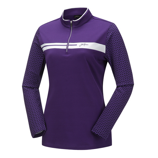 * 소재:폴리에스터 95% 폴리우레탄 5%* 색상:퍼플- 소매 부분 패턴으로 포인트를 준 여성 티셔츠.- 우수한 신축성의 소재로 활동성을 전해줌.- 반목에 반집업 여밈을 적용하여 착장이 간편함.- 가슴판의 로고 레터링으로 완성도를 높였음.- 라운딩 및 야외 활동에 코디 연출이 용이함.* 판매원: 코오롱인더스트리(주)FnC부문* 원산지: 대한민국| 소재정보: 폴리에스터 95% 폴리우레탄 5% | 사이즈정보: