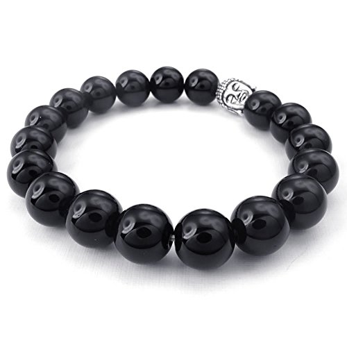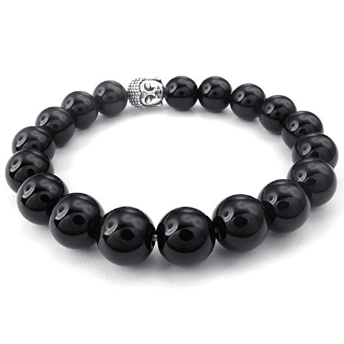 - Title : KONOV Jewelry Black Agate Mens Womens Bracelet, 10mm Energy Bead, Buddha Mala, Black Silver