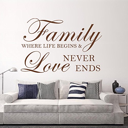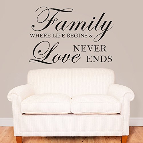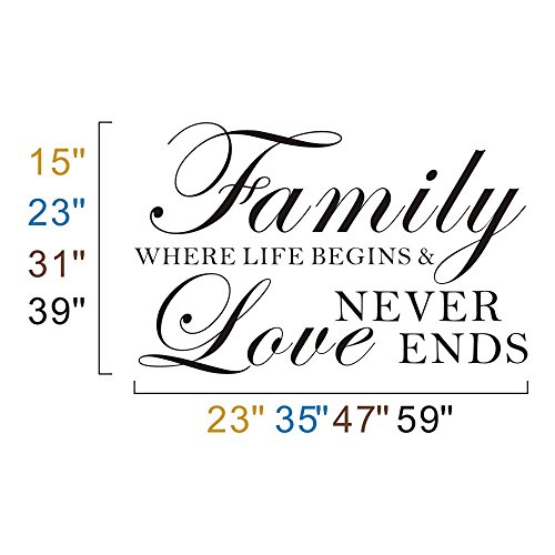 MairGwall Love Saying Vinyl Family Where Life Begins And Love Never Ends -Family Wall Decal for Living Room,Bedroom (Black, 15"h x23"w)