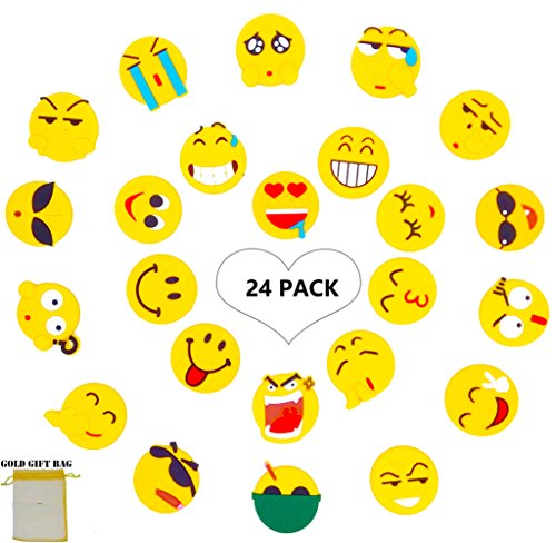 Emoji Fridge Magnets- 24 Set Perfect Funny Decor Magnetic for Map/ Photo/ Calendar/ Locker/ Whiteboard, Office and Refrigerator Magnet- Cute Emoticon Kids Rubber Magnet, Party Favor, Christmas Gift