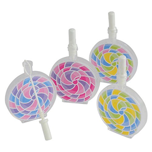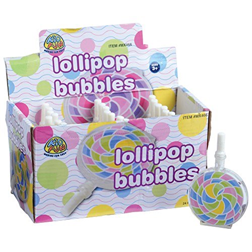 Studio : Marvel Trading Company, Inc Publisher : Marvel Trading Company, Inc Binding : Toy Product Description Have some delicious outdoor fun with these lollipop-themed bubbles. Resembling the yummy treat, these bubbles make a great decoration on candy buffet tables and are a sure crowd pleaser among guests young and old. Lot of 24- assorted. 0