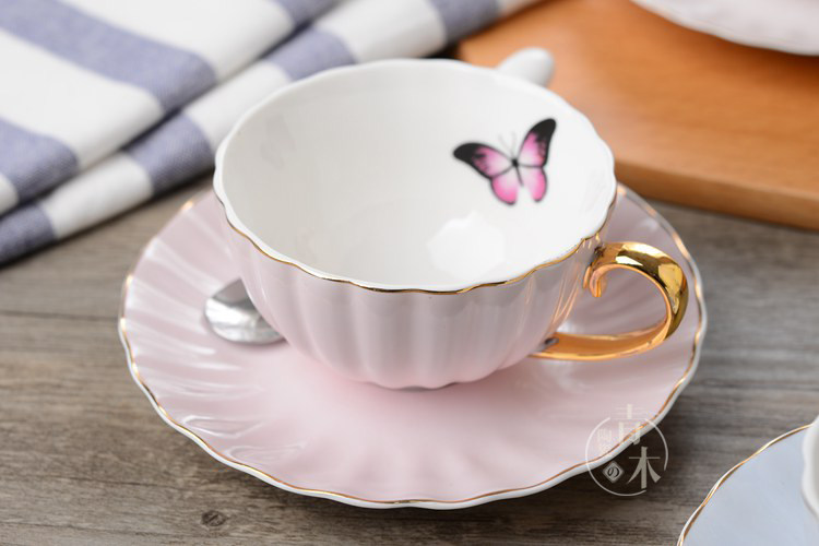田园风英式皇室陶瓷红茶杯碟套装 欧式骨瓷咖啡杯 优雅金边高贵