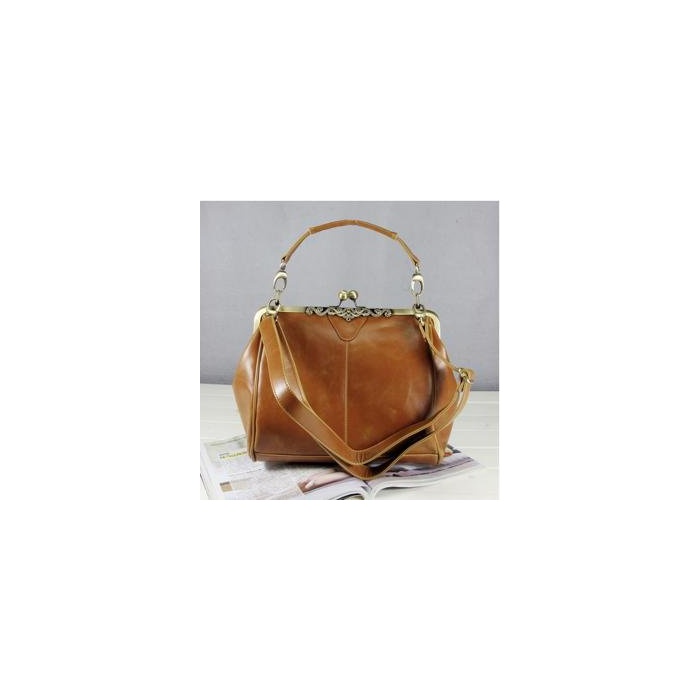 원본상품명: レトロな感じのショルダレザバッグ がま口タイプ 2way ブラウン