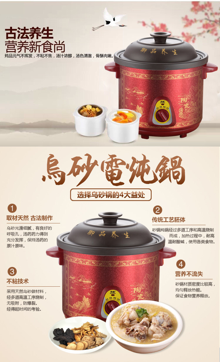 可以煲汤,煮粥,营养百分百,高档白陶瓷材质,不会开裂,质量绝对保证,炖锅带有防干烧功能,防溢出设计。