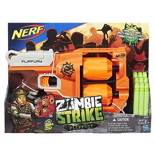 - Feature : Zombie Strike FlipFury blaster fires up to 12 darts without reloading / 2 flipping dart drums hold 6 darts a piece / When one drum is empty, flip to the other one / Includes FlipFury blaster, two 6-dart drums, 12 Zombie Strike darts and instructions
