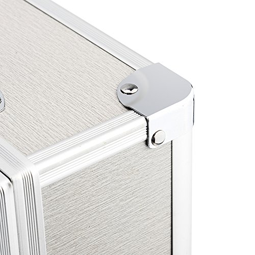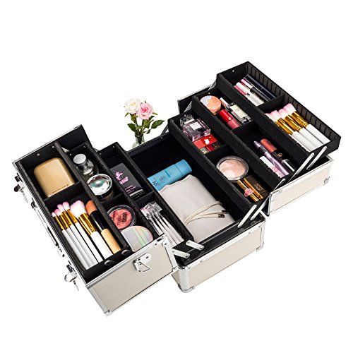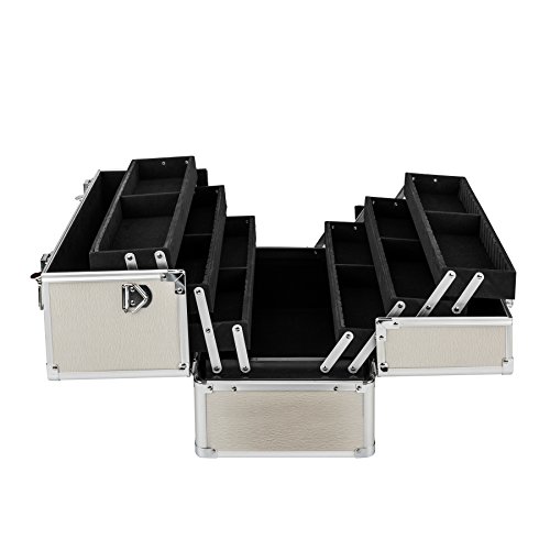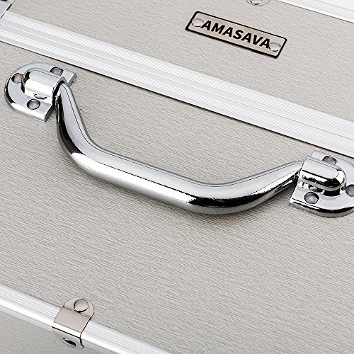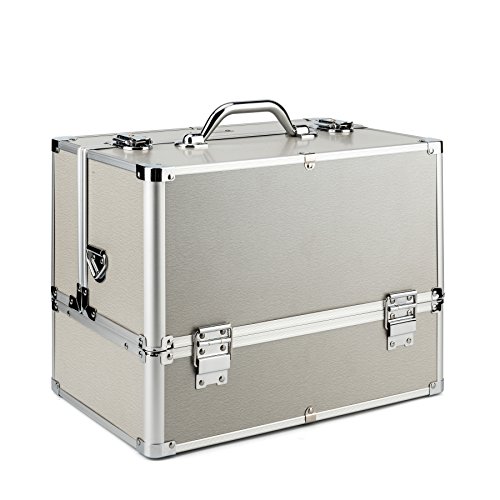 Amasava Makeup Train Case Professional 14" Large Make Up Artist Organizer Kit Shoulder Strap With Adjustable Dividers, 6 Trays & Key Lock - Silver
