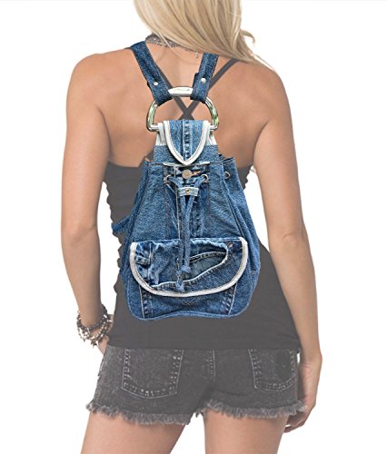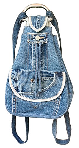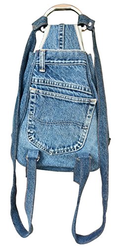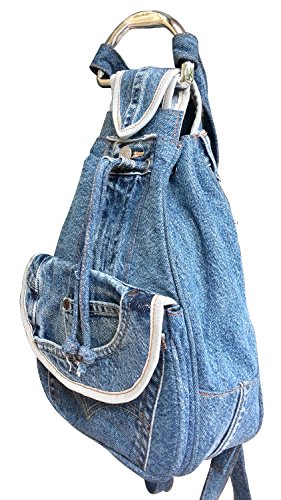 Stunning ruckpack made from original denim jean pants pattern with silver tone bottons, handle and hardware.