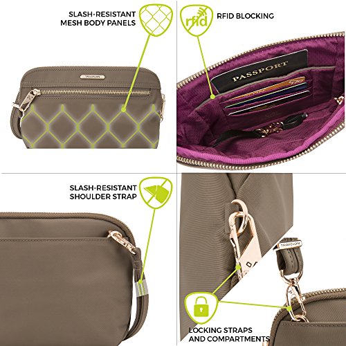 Studio : Travelon Publisher : Travelon Binding : Apparel Product Description This stylish Convertible Crossbody Clutch can be worn three ways. It offers functionality and versatility as a clutch, wristlet or crossbody bag. The locking main compartment has RFID protected passport and card slots to keep your personal information secure. The slash-resistant, adjustable and removable shoulder strap can be secured to a stationary object to prevent a grab and go. 0