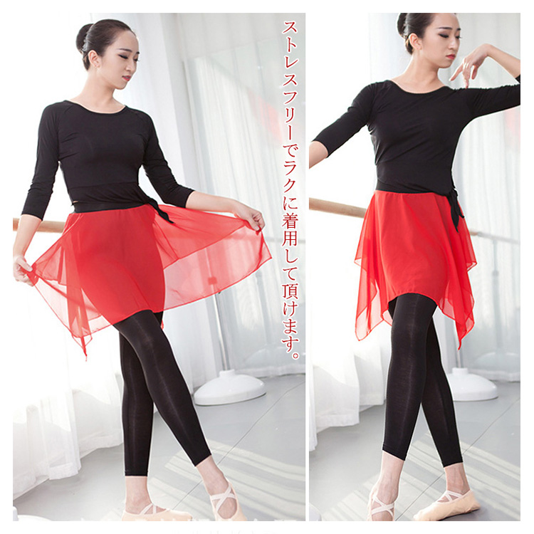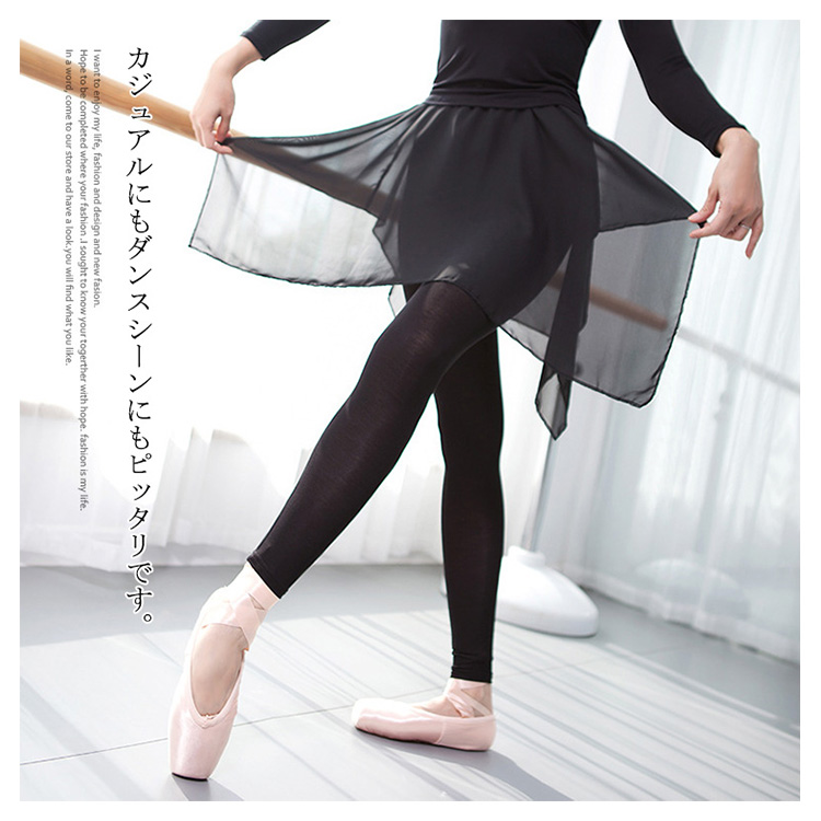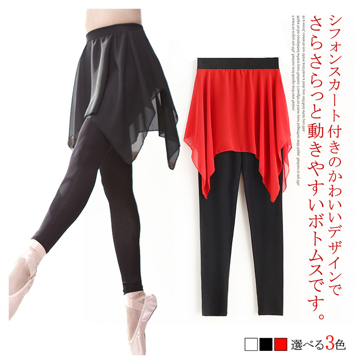 | シフォンスカート付きのかわいいデザインでさらさらっと動きやすいボトムスです。ウエストもゴムで楽ちん平べったいゴムで痛くなりません。ストレスフリーでラクに着用して頂けます。カジュアルにもダンスシーンにもピッタリです。 | |