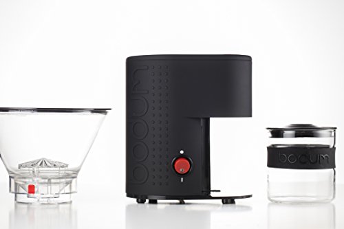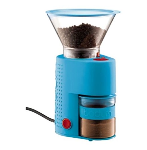Ask any coffee connoisseur and they'll tell you that in order for coffee beans to develop their full flavor profile, they must be ground right before coming in contact with hot water. This is where the bistro electric burr coffee grinder comes in and becomes part of the coffee making ritual. The Bistro is continuously adjustable - twisting the upper bean container determines how finely ground the beans will be. With over 14 settings from coarse to fine, you can deliver the ideal grind for any brewing method. But there's more to it than that. Most coffee grinders use plastic containers to receive the ground coffee but plastic and ground coffee don't go together well. The powder gets statically charged and spills all over the place. The new Bistro comes with a borosilicate glass container to catch the grounds. The glass catcher is inherently static-free, reducing the amount of overall static and "jumping" coffee grounds. This and the tight silicone/nylon lid make for an excellent, no-spill coffee grinder. The borosilicate glass container comes with a silicone band to make it slip-proof, an especially important feature when touched with wet hands. The Bistro is made from borosilicate glass, steel, plastic, rubber and silicone and comes in black, orange, red, green, and white.Feature