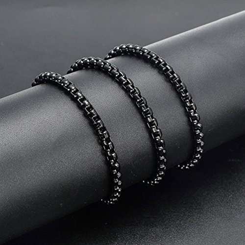 -. Title : Xusamss Hip Hop Black Titanium Steel Square Beads Chain Necklace,Width 4MM