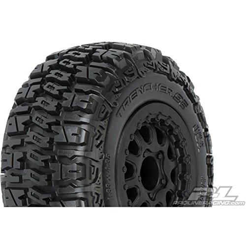 This is a pair of Trencher SC 2.2"/3.0" M2 (Medium) Tires Mounted on Renegade Black Wheels (2) for Slash® Rear, Slash® 4x4, SCRT10 & Blitz Front or Rear. You will never tread lightly with your Short Course (SC) Truck again with Pro-Line's Trencher SC tires. The Trencher tires are designed to give your short course truck optimal traction on just about any surface. Realistic shaped treads give your short course truck a scale look while offering ridiculous amounts of forward bite. The tall tread will also offer traction in many different terrains and deliver durability, second to none.