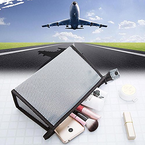 Travel Makeup Cosmetic Bag, PVC Travel Kit Toiletry Storage Bathroom Organizer, Brush Pouch Pencil Pen Case (Black)