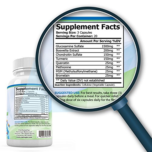 Truth in Labeling: When you buy Natrogix Glucosamine Joint Support Formula, you actually get what is on the label. Many supplements have been shown with independent laboratory tests to contain far less of the ingredients than is listed on their labels. Our joint supplement contains the full amount listed. Repair, Rehydrate and Restore Damaged Joints: Works to stimulate the production of synovial fluids within your joints. The synovial fluids are responsible for the viscoelasticity and lubricating properties of the joints. Thus the improved production and regulation of these fluids leads to the re-hydration of joints and a reduction in stiffness. Repair Damaged Joint Tissue: Provides your joints the necessary building blocks to repair damaged joint tissue and cartilage. These essential building blocks work to reverse years of damage and provide your body the necessary components for strong, stable and healthy joints. Improve Mobility, Movement Flexibility: Work to restore mobility, movement and flexibility within your joints by restoring damaged joints as well as targeting and eliminating the root cause of joint degradation. 100% Safe Gluten-Free Pure Ingredients: Free from gluten, additives and buffering agents. The only ingredients are the joint health supplements and cellulose veggie capsules. Purity is ensured because our natural, organic and effective formulation of trusted natural ingredients are carefully processed in a US FDA and GMP-approved laboratory. 0 |