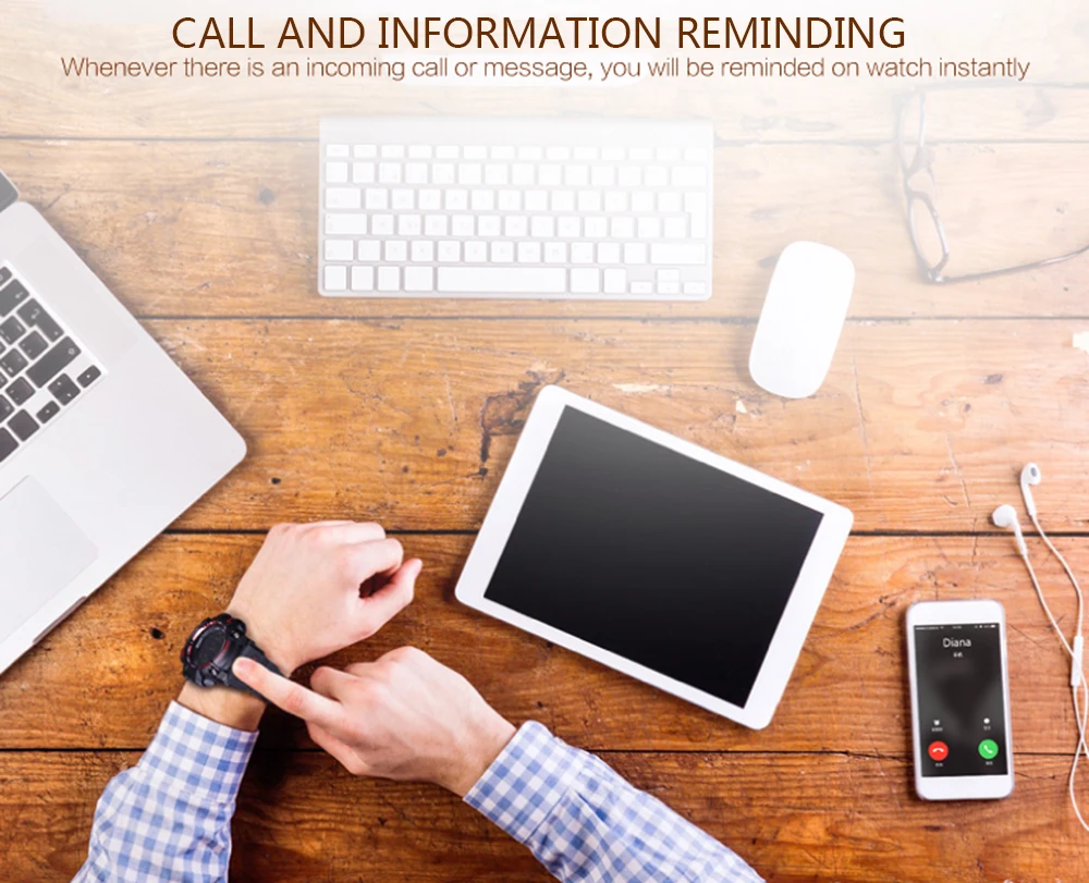Function:Chronograph,Calendar,Remote Control,Alarm Clock,Passometer,Message Reminder,Call Reminder