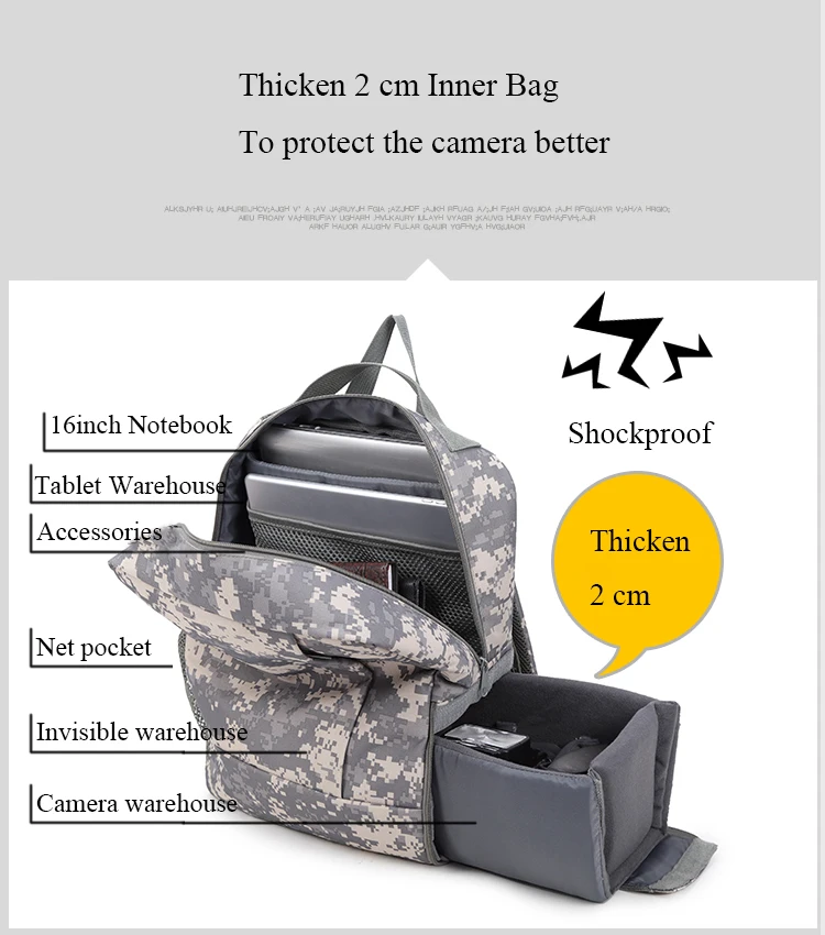 Color:Black/Gray/Camouflage