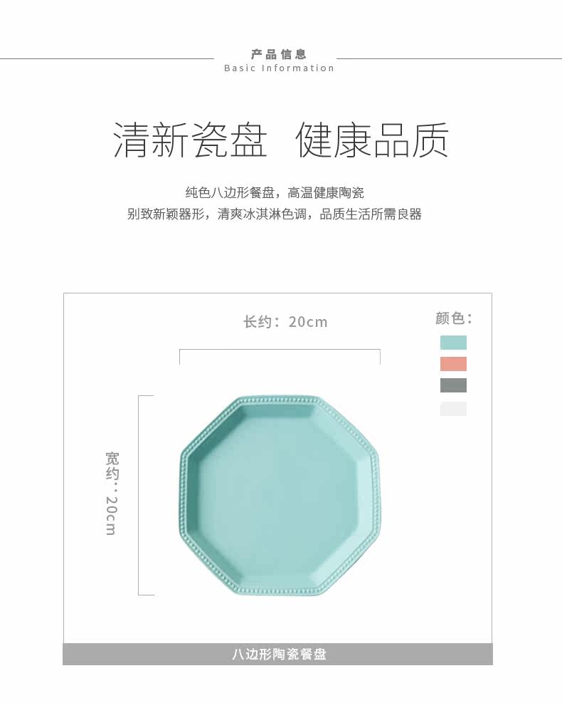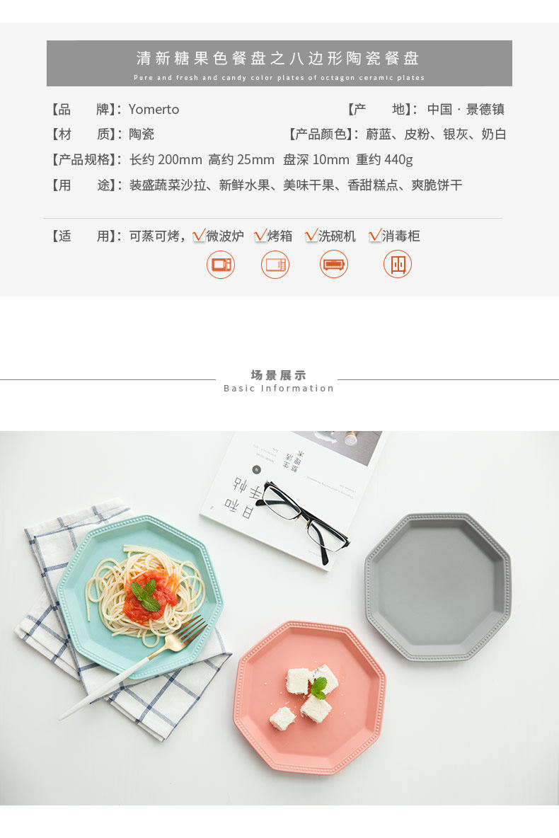 八边形陶瓷餐盘创意多边形盘子家用点心盘蛋糕盘水果盘西餐盘