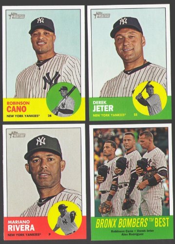 - is is the 2012 Topps Heritage New York Yankees basic 22 card team set. It includes Derek Jeter, Nick Swisher, Rafael Soriano, "Bronx Bombers Best" (Jeter / Cano / Rodriguez), Mark Teixiera, Curtis Granderson, Ivan Nova, Robinson Cano, Mariano Rivera, Francisco Cervelli, Jorge Posada, Russell Martin, Alex Rodriguez, Brett Gardner, Joe Giradi, Freddy Garcia, Michael Pineda, Eduardo Nunez, Andrew Brackman, David Robertson, "Veteran Masters" (Girardi / Rivera) and Austin Romine.