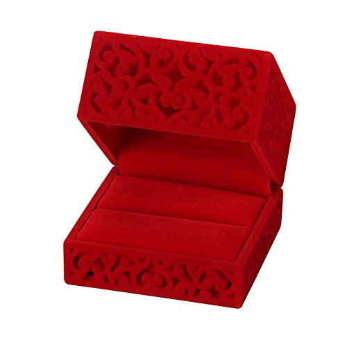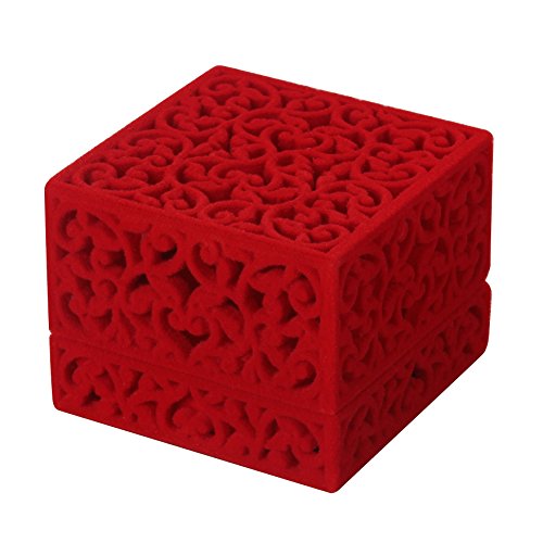 LittleTiger Pierced Velvet Jewelry Box for ring engagement gift wedding favor (Red)