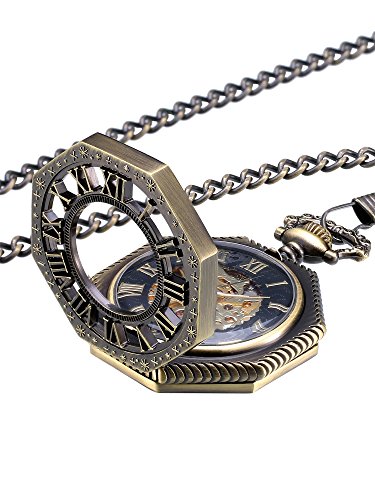 -. Feature : Easy to set time: you can set time easily by yourself, just pull the crown away from base of the watch a little and turn the crown clockwise until reaching the exact time / Working without batteries: this pocket watch features hand mechanical movement to wind up, it can work well even without a battery, and its power is from mechanical movement / Exquisite appearance: you can view the gears and check its operation conveniently according to its clear back appearance; And its roman numbers, surrounded by delicate patterns, are marked on the surface of the watch / Warm notice: push the crown back into the watch base and wind up the watch clockwise 15 - 20 times, and the power will be full (over winding will ultimately break the spring) / Good gifts: the windup pocket watch comes with gift box, and shows a roman and vintage style; It is a good gift for yourself, husband, relatives, friends, colleagues and so on