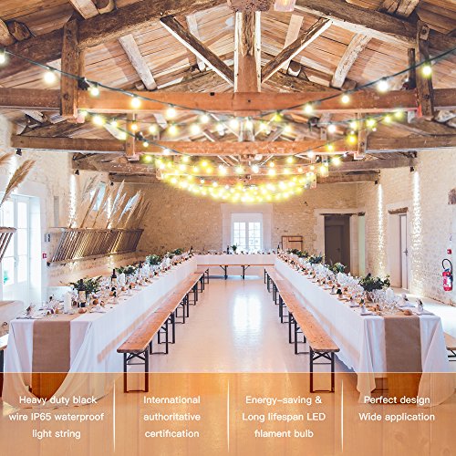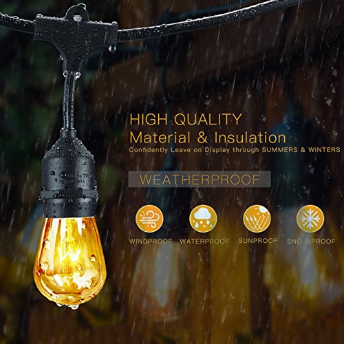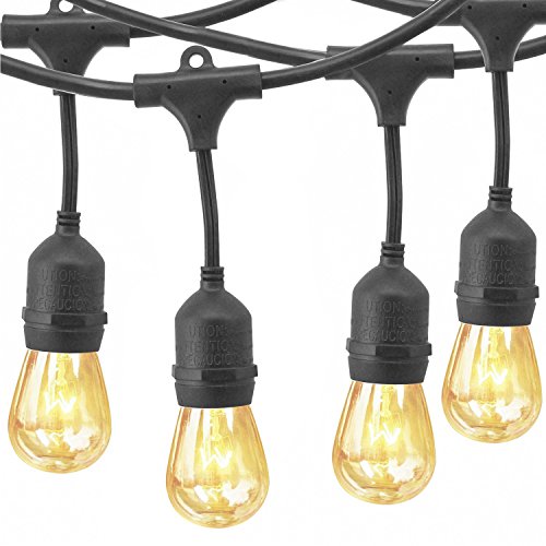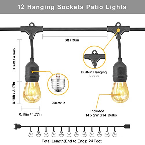 YZtree Outdoor String Lights,Watherproof Commercial Quality Bistro Festoon Garden Light 24 Feet with 12 Hanging Dropped Sockets