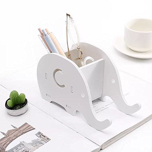 Cell Phone Stand,Dreammax Cute Wood Elephant Pencil Pen Holder ,MultiFunction Removable Mobile Phone Bracket ,Storage Pot Holder Box Desk Organizer for iPhone iPad Samsung Tablet (white)