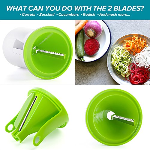 BE INSPIRALIZED : Create Thick or Thin spirals. Perfect sizes to create colorful assorted variety of vegetable to use in stir fries, gluten free vegan pasta dishes, salad brighteners and more! The Original Zoodle Slicer is made with special sturdy Japanese stainless steel blades, guaranteed to stay sharp and never rust!