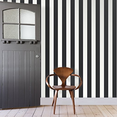 RoomMates RMK11082WP Awning Stripe Peel and Stick Wallpaper, 20.5" x 16.5 feet, Black
