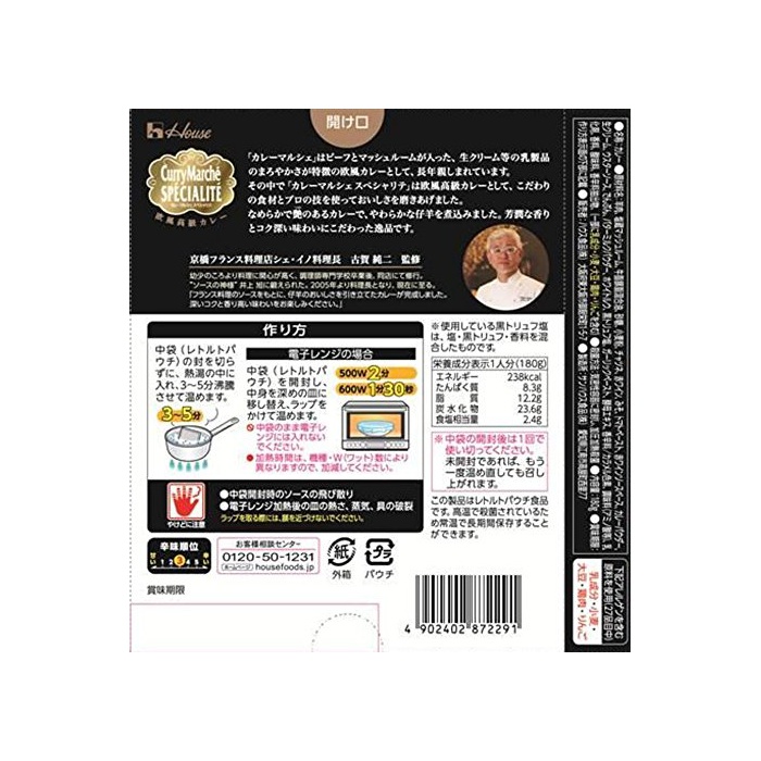 원본상품명: ハウス カレ?マルシェスペシャリテ 仔羊とマッシュル?ムのカレ? 180g
