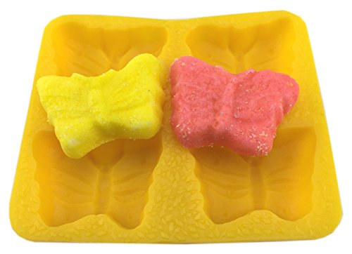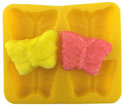 - Large Butterfly Soft Candy Mold: 4 Cavities per mold, 1 Design, Mold Size: 4” x 3 ⅜”, Cavity Size: 1 ¾” x 1 ¼” x ½” Depth