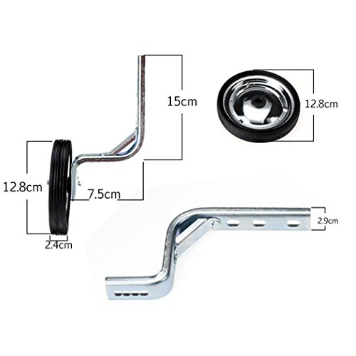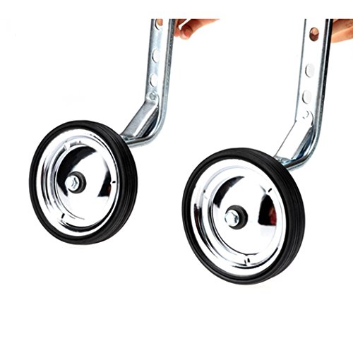 Studio : Pesters Publisher : Pesters Product Description 100% Brand New Item: Bicycle Training Wheels Material: Metal and Rubber Color: Silver Black Wheel Size: Dia. 12.8 x W2.4 cm/5 x 0.9inch Bracket: L21 x W7.5 x 2.9cm/8.2 x 2.9 x 1.1inch For Wheel Size: 12"/ 14"/ 16"/ 18"/ 20"
