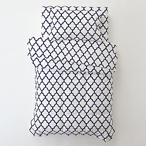 Studio : Carousel Designs Publisher : Carousel Designs Binding : Baby Product Product Description Toddler pillow case in Navy and White Hand Drawn Quatrefoil, with pillow. Our toddler pillowcases are designed to be a perfect fit for our toddler pillows, and are guaranteed to be a comfy fit for your toddler! Measures 14" x 21". Pillow included, measures 14" x 20". Our toddler pillows are made with recyclable hypoallergenic polyester fiberfill. 0
