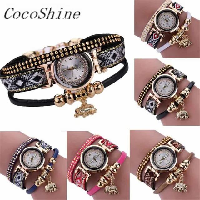 | [해외] A-666 높은 품질 깃털 위브 랩 팔찌 시계 크리스탈 합성 패션 체인 시계 및 도매 |