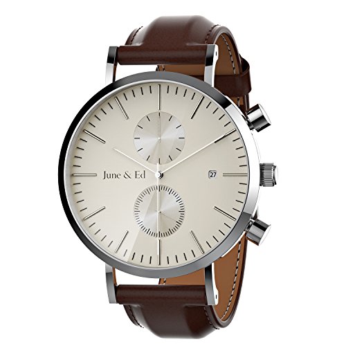 -. Feature : 41mm Edelstahl Stahl Hülle mit Saphir Kristall wählen Fenster: extrem reflektierende und extrem kratzfest / Importiert. Japanisches Quarzuhrwerk. Multifunktional: mit datum, stoppuhr und andere funktionen / Echt leder-armband mit verschluss schnalle / Wasserabweisend bis 50m (150ft)/5 ATM (Regenfest) / Paket enthalten: June & Ed Armbanduhr mit Anleitung, Garantie auf Lebenszeit