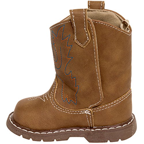Let your little cowgirl have some fun in these Western Cowboy Boots by Baby Deer. Featuring a Velcro close side closure for sizes 2 through 5 or a simple slip on for sizes 6 and higher, these boots are easy to put on or take off regardless of how squirmy your child is. The traditional cowboy design is perfect for pairing with a cowboy hat and jeans. The lined interior is soft to the touch and won't irritate your child's feet while a solid sole can handle every day use. Available in multiple infant, toddler, and kid sizes.Feature