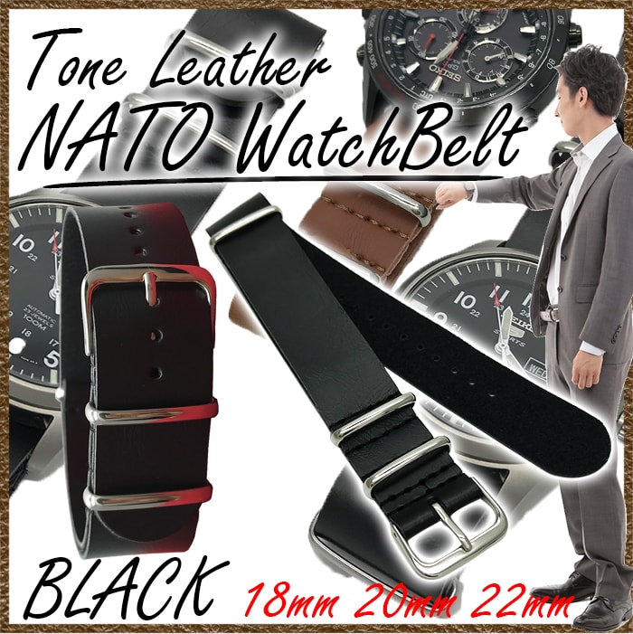■ 商品説明 : 人気の NATOベルト の レザー タイプ です。こちらの商品は 合皮 タイプとなっておりますので、ご注意下さい。その分、 リーズナブル な モデル となっております。また、非常に 合皮 の特徴でもありますが、 柔らかい さわり心地 です。 NATOベルト は、一度装着すると、 NATOベルト から NATOベルト への 交換 が非常に楽なので ファッション に合わせて付け替えなど、楽しめますのでおすすめです。
