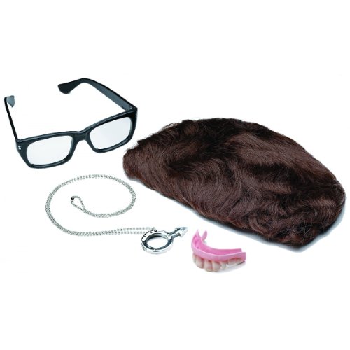 -. Feature : Includes: Black Glasses, Teeth, Brown Wig, Necklace w/Male Symbol
