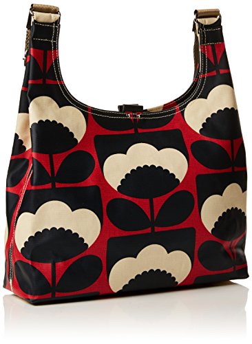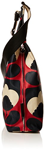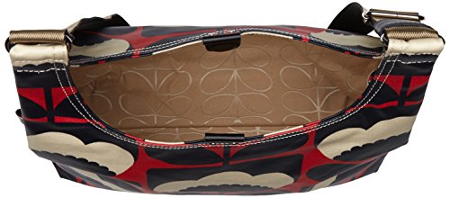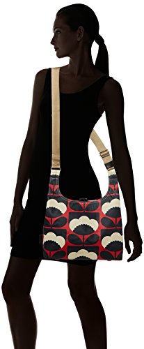 Matt laminated midi sling bag in 'spring bloom' print with leather trims, double sided adjustable webbing strap and leather magnetic tab for closure. Inside details include sand linear stem jacquard lining, small leather logo card holder pocket, small zip pocket, elasticated key chain and mobile pocket. Silver coloured hardware. Adjustable webbing tape strap that allows the bag to worn as a shoulder bag or across the body (max length 114Cm).