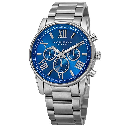 -. Title : Akribos XXIV Women's Swiss Quartz Multi-Function Blue Sunray Dial on Silver-Tone Case with Stainless Steel Bracelet Watch AK908BU