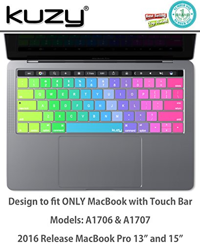 Kuzy - 2016 Rainbow Keyboard Cover for Touch Bar Models NEWEST VERSION - MacBook Pro 13 (A1706) & MacBook Pro 15 (A1707) with Touch ID Silicone Skin - Rainbow