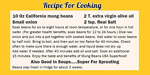 [Product Information]- About Our Mung Beans! We are proud to offer you the highest quality Mung Beans, by a family owned Organic farm located in the state of California, U.S.A. Our top quality Mung Beans are used for cooking, adding just the right nutrition to your diet.