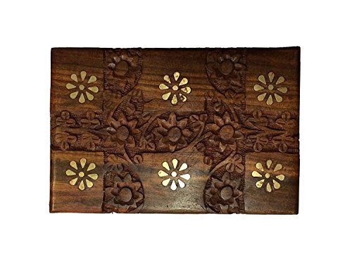 valentines day gifts, Wooden Jewelry Box Brass Inlay Unique Flower Design, Wooden Decorative Jewelry Box, Wooden Vintage Box, keepsafe box 7 X 5 inch,